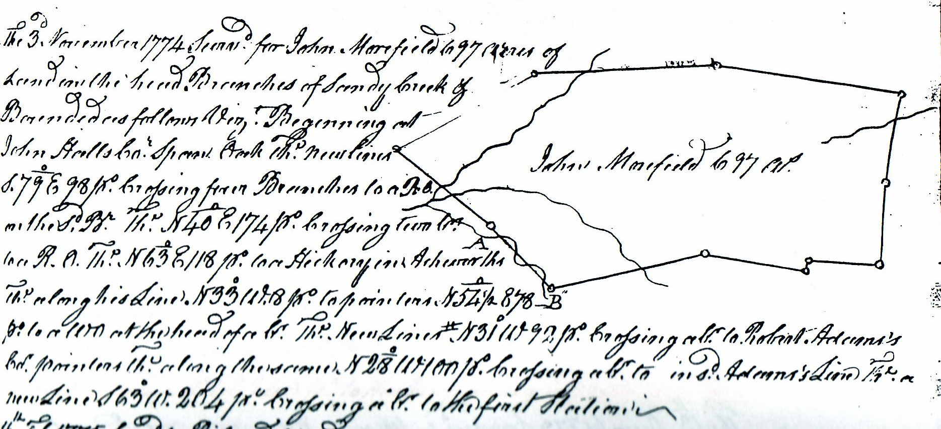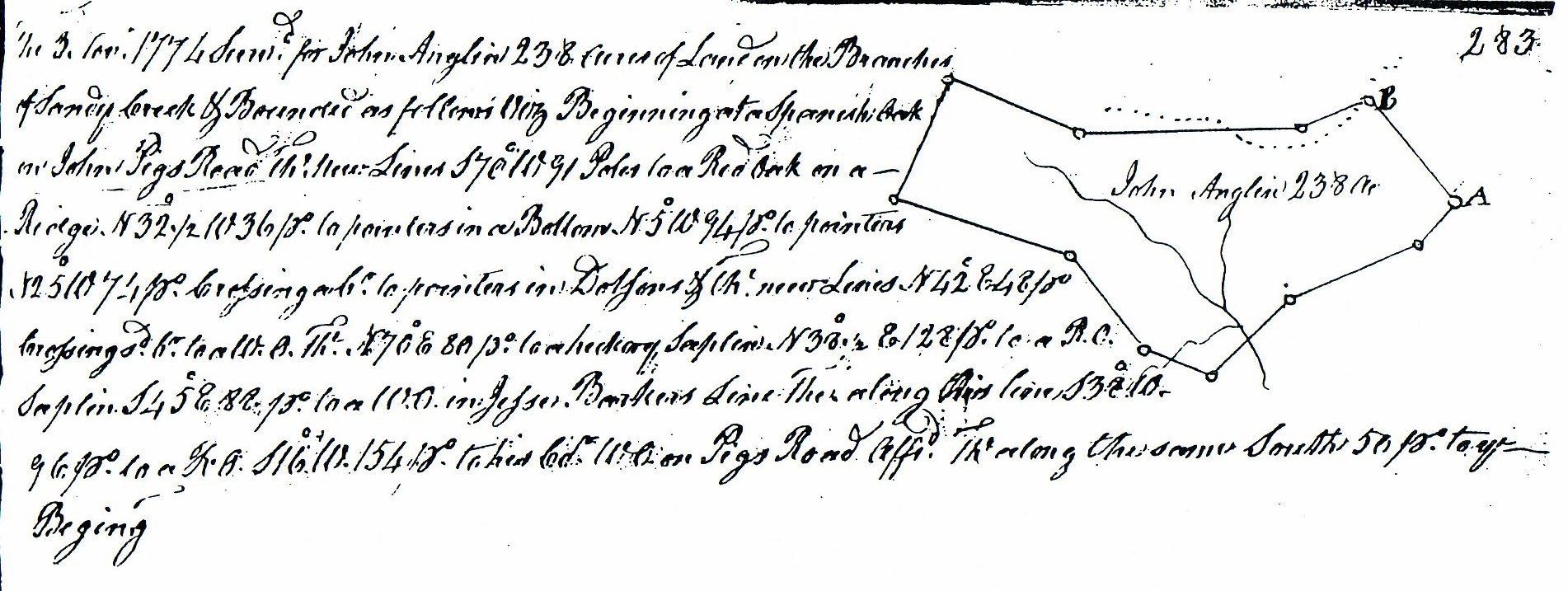 Also originally surveyed in 1774, for John Anglin and John Moreland, these parcels were purchased in 1801 by Thomas Harper. (above and below) All three tracts adjoin each other.