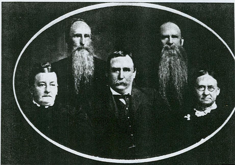 Chidren of Wash and Susannah - (l. to r.) Harriet Hall Cosser Baker, John W. Hall, David W. Hall, J. Warren Hall & Julia Hall Gibson
