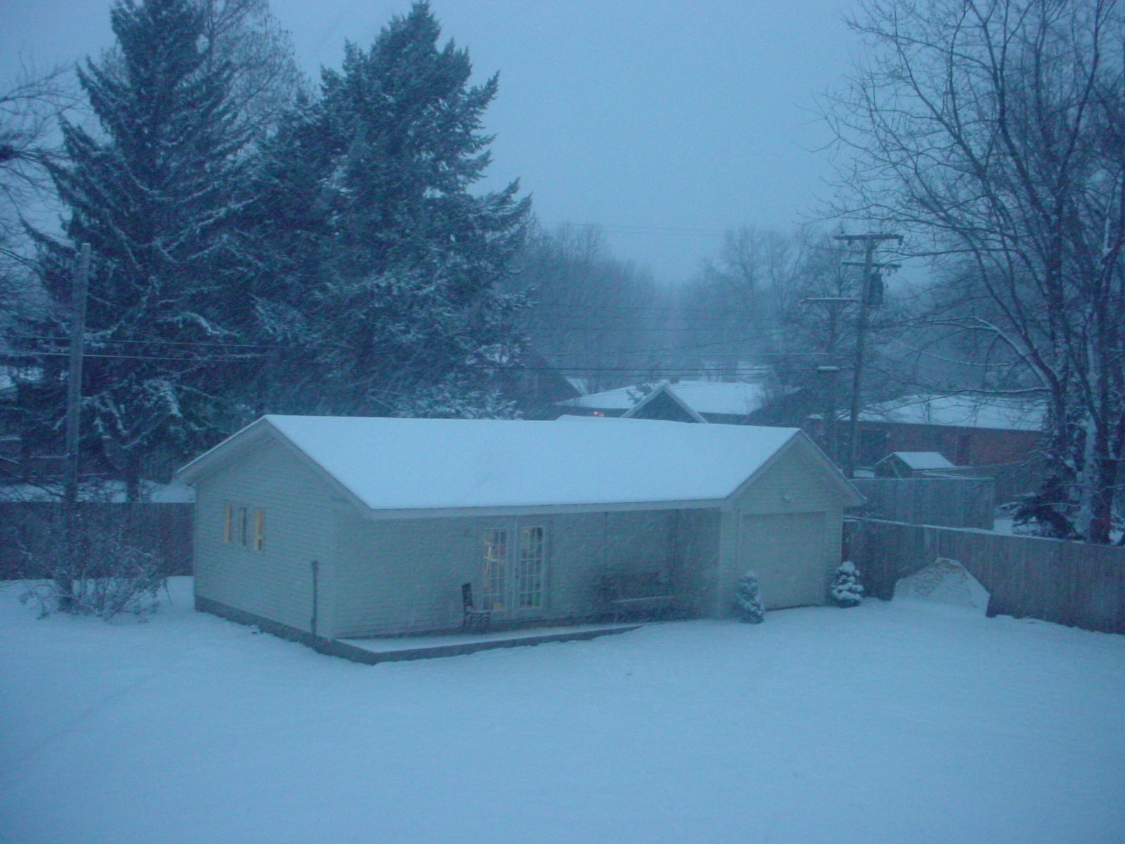 Here's my shop in a snowstorm. Here it is on a summer day.